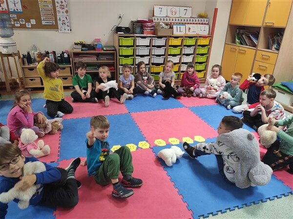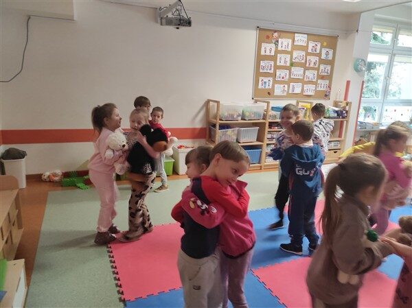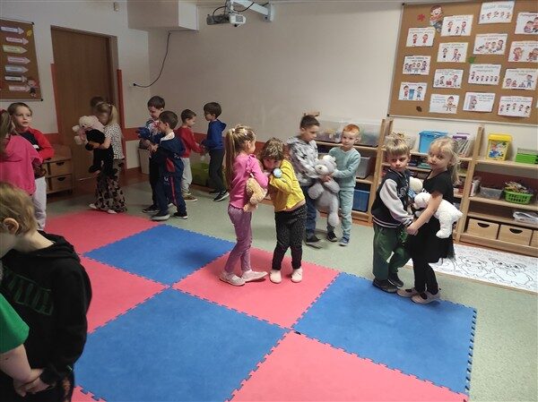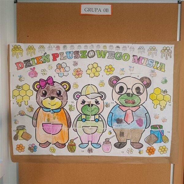 Tego dnia każde dziecko z grupy przyszło do przedszkola ze swoim ulubionym misiem oraz ulubioną książką o misiu. Dzieci poznały historię misia, bawiły się przy misiowych piosenkach, brały udział w zabawach matematycznych i ćwiczyły zręczność.