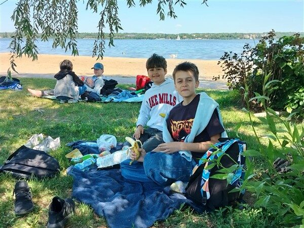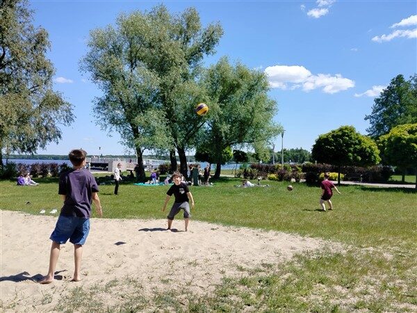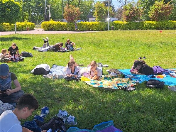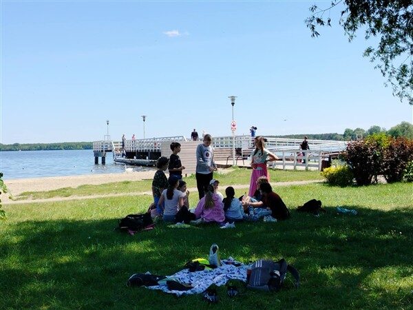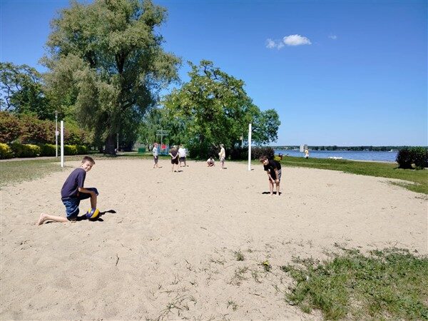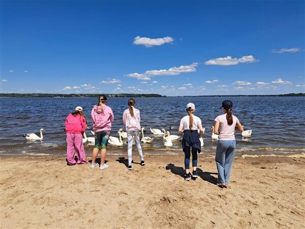 Po krótkim zapoznaniu się z historią Zalewu Zegrzyńskiego, uczniowie oddali się relaksowi na plaży w Nieporęcie.