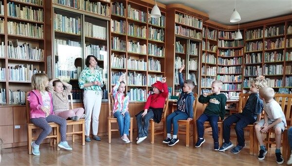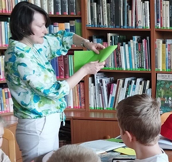 15 kwietnia gościliśmy w naszej bibliotece dr Aleksandrę Berkowską – pedagoga, autorkę powieści dla młodzieży i wierszy dla dzieci. Poprowadziła ona zajęcia z klasą Ia na temat Afryki i zwierząt tam żyjących. Zaczęło się od przeczytania wierszowanej historyjki o podróżniku i jego przygodach podczas przemierzania gorącego kontynentu. Później dzieci oglądały przepiękne fotografie w wielkim albumie. Było też trochę ruchu podczas zabawy w fotografa na sawannie, a następnie zagadki jako sprawdzenie, co zostało z przeczytanej treści zapamiętane. Uczniowie znaleźli Afrykę na globusie i zapoznali się z mapą w Atlasie. Na koniec wykonaliśmy skaczące żaby z kolorowego papieru – nie było to łatwo! Mamy nadzieję, że pani Ola odwiedzi nas jeszcze niejeden raz, by spotkać się również z innymi klasami podczas ciekawej, edukacyjnej zabawy.