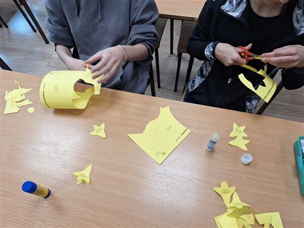W ramach wolontariatu nasi uczniowie wykonywali samodzielnie symboliczne papierowe żonkile, które następnie zostały rozdane uczniom i nauczycielom jeszcze przed świętami.