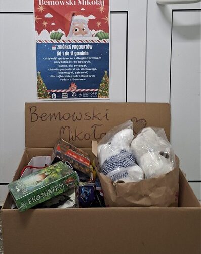 W ostatnim tygodniu nasza szkoła włączyła się w akcję charytatywną „Bemowski Mikołaj”. Dzięki zaangażowaniu naszej społeczności szkolnej udało się nam zebrać kilka kartonów darów dla potrzebujących. Serdecznie dziękujemy hojnym darczyńcom. Podziękowania kierujemy również do Urzędu Dzielnicy Bemowo za koordynowanie akcji oraz do wszystkich, którzy włączyli się w zbiórkę. Dziękujemy za wspólne