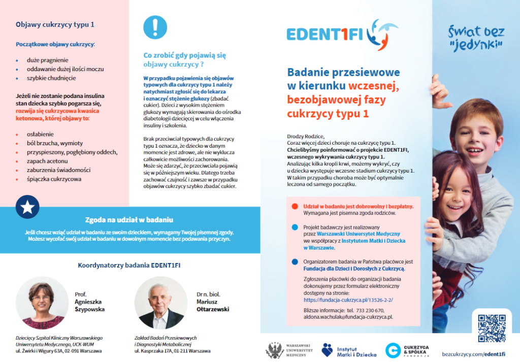 nasza placówka bierze udział w badaniu przesiewowym dzieci i młodzieży w kierunku diagnostyki cukrzycy typu 1. W załączeniu przekazuję Państwu ulotkę oraz formularz.