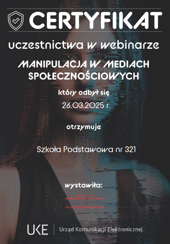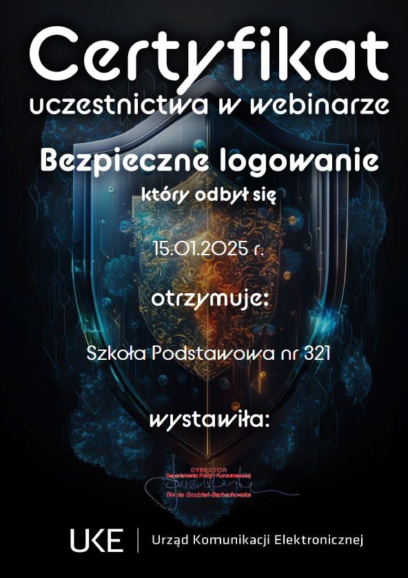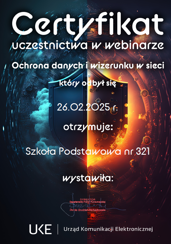 W dzisiejszym świecie Internet jest nieodłączną częścią życia dzieci i młodzieży. Korzystanie z sieci niesie za sobą wiele korzyści, ale wiąże się także z zagrożeniami, o których młodzi użytkownicy często nie zdają sobie sprawy. Aby zwiększyć świadomość na temat bezpiecznego korzystania z Internetu, uczniowie klasy 4a wzięli udział w cyklu webinarów „Bezpieczna szkoła w sieci”. Organizatorem spotkań był Urząd Komunikacji Elektronicznej.