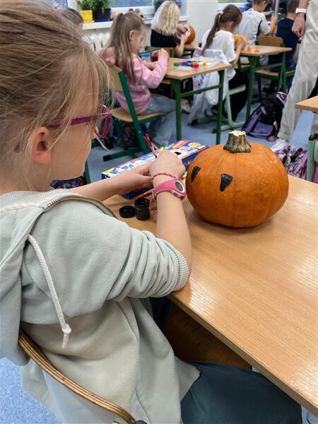 To były bardzo ciekawe i twórcze zajęcia. Malowanie dyni sprawiło nam wszystkim dużo radości i wprowadziło w klasie prawdziwie jesienny nastrój.
