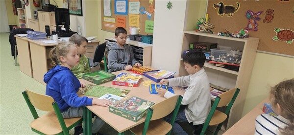 Dzień gier planszowych w świetlicy szkolnej był pełen radości, emocji i dobrej zabawy. Uczniowie mieli okazję wspólnie spędzić czas, rywalizując i współpracując przy różnych grach. Spotkanie sprzyjało integracji, rozwijaniu logicznego myślenia oraz nauce zasad fair play. Wszyscy uczestnicy z entuzjazmem zaangażowali się w rozgrywki, a atmosfera była pełna śmiechu i pozytywnej energii.