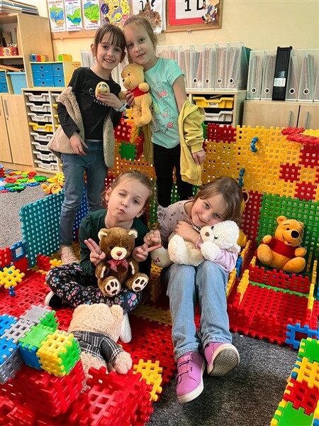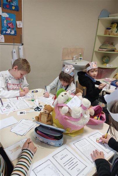 i domowo. Dzieci przyniosły swoje ulubione pluszaki. Były zdjęcia z misiami, kolorowanki