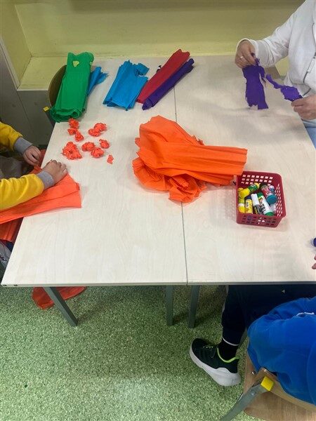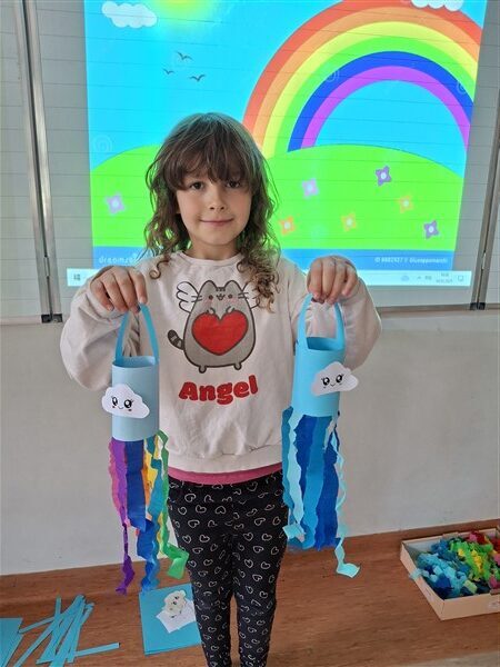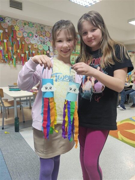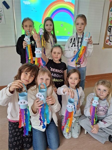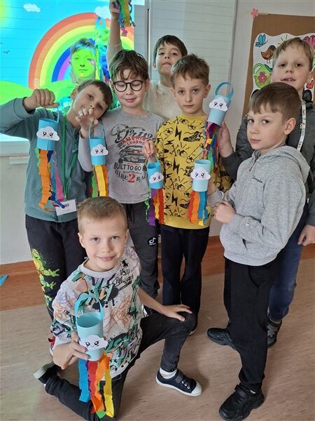Nie zabrakło również edukacyjnych ciekawostek – dowiedzieliśmy się, jak powstaje tęcza i dlaczego ma siedem kolorów. To był dzień pełen kolorów, uśmiechów i dobrej zabawy! 🎊🌈✨