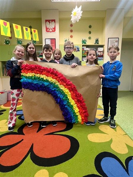 Światowy dzień tęczy to kolejne nietypowe święto, które nadało niezwykły koloryt dnia poprzez barwne prace plastyczne.