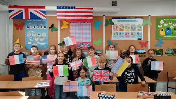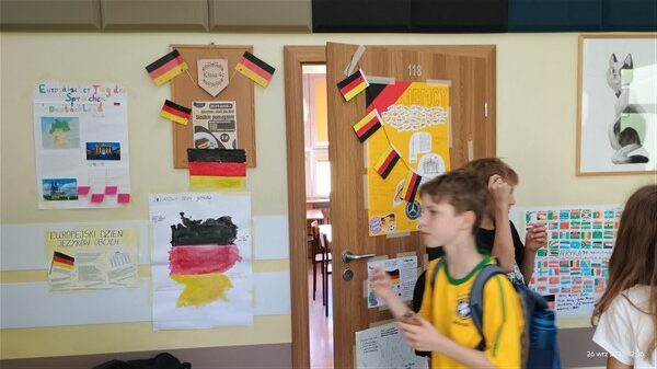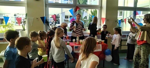26 września obchodziliśmy w naszej szkole Europejski Dzień Języków, który został ustanowiony przez Radę Europy w 2001 roku i jest świętowany we wszystkich krajach europejskich. Głównym założeniem tego święta jest promowanie bogactwa kulturowego Europy oraz motywowanie uczniów do nauki języków obcych. Nasi uczniowie z klas 1-3, pod opieką nauczycieli języków obcych, wykonali własnoręcznie flagi państw europejskich i poznawali elementy kultury tych krajów. Panie A. Piotrowska oraz M. Śmiarowska przygotowały stoisko USA, gdzie uczniowie mogli spróbować amerykańskiego śniadania. Były balony, monety, koszulki, flagi i plakaty z motywami Stanów Zjednoczonych.