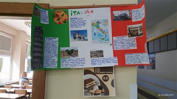 Uczniowie z klas starszych zaprezentowali natomiast interesujące prezentacje i plakaty mające na celu ukazanie różnorodności językowo-kulturowej naszego kontynentu. Każda klasa wybrała jeden kraj. Ponadto niektóre klasy przygotowały stoiska z potrawami z wybranego kraju. Można było spróbować angielskiego śniadania, włoskiego tiramisu, najlepszych serów z Holandii, cynamonowych ciasteczek i kuleczek z Danii oraz kiełbasek, czekolady i różnych delicji z Niemiec. Stoiska z jedzeniem cieszyły się bardzo dużym zainteresowaniem wśród uczniów i nauczycieli.
