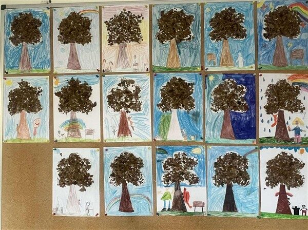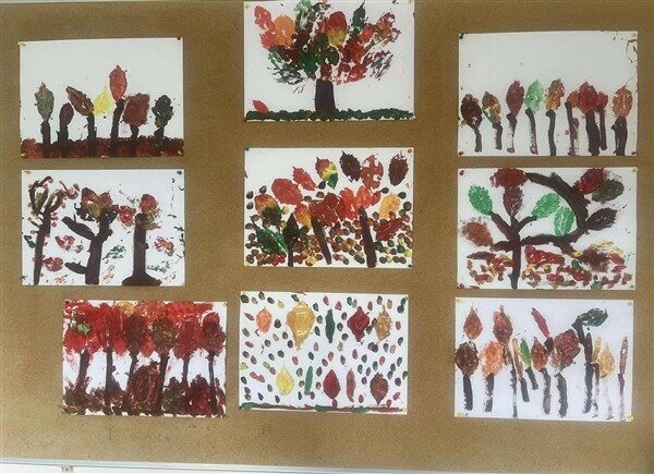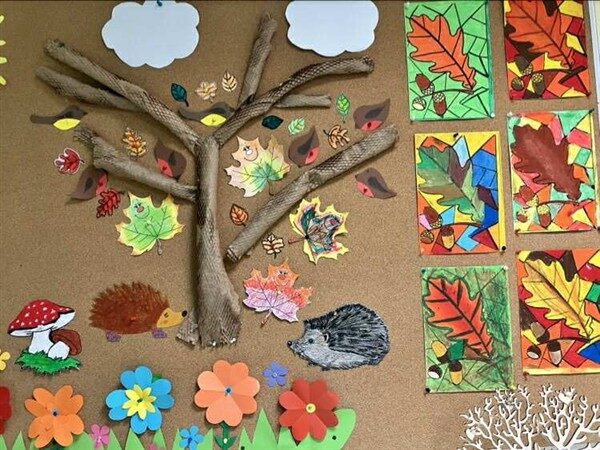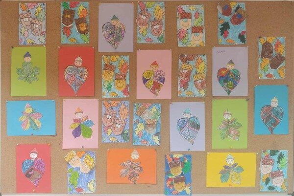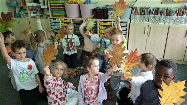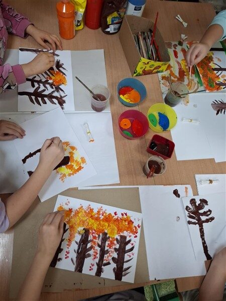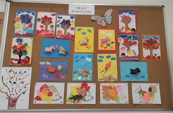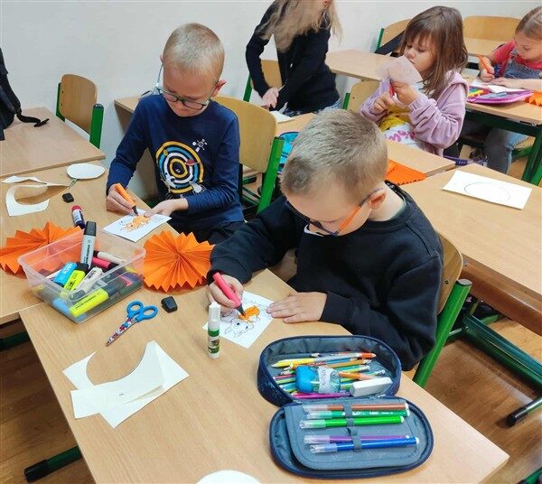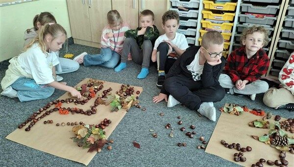 Jesień rozgościła się już nie tylko za oknem, ale również w naszej świetlicy. Jesienne dary stały się inspiracją do kreatywnych i kolorowych prac plastycznych. Jak zawsze chętnie zbieraliśmy kolorowe liście, kasztany, żołędzie. Powstawały jesienne kąciki ozdabiające nasze sale. W trakcie warsztatów jesiennych, powstawały kolorowe liście z papieru, jeże, sówki, liski, żołędziowe ludziki, wiewiórki a nawet pająki. Malowaliśmy jesienne drzewa, łącząc odpowiednie kolory. Rozwijamy nasze zdolności manualne, wyobraźnię i wrażliwość na przyrodę. W świetlicy nie ma nudy, jest dobra zabawa!