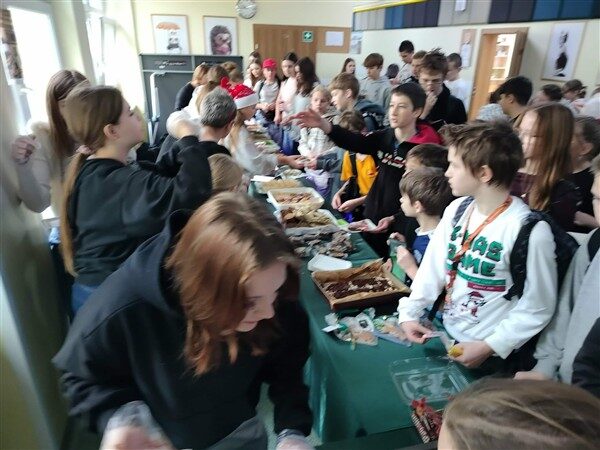 Jesteśmy pełni zachwytu i ogromnej wdzięczności dla nauczycieli, rodziców, uczniów, pracowników szkoły – za Wasze serce, czas i niebywałe talenty. Wasze wypieki nie tylko kusiły zapachem i smakiem, ale były prawdziwymi dziełami sztuki kulinarnej. Rękodzieło, które przygotowaliście, zachwycało pomysłowością, starannością i kreatywnością – to prawdziwe małe arcydzieła. Wasze zaangażowanie przerosło nasze najśmielsze oczekiwania i sprawiło, że ta akcja była wyjątkowa.