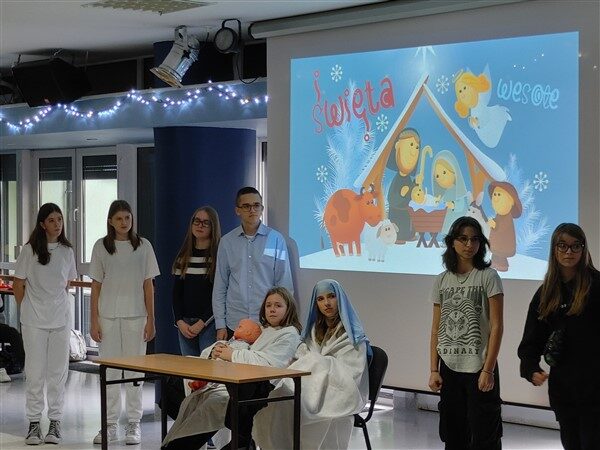 Z dniu 22 grudnia w przedstawieniu jasełkowym pt. “Jasełka z rogami” wystąpiły dzieci z klas 7b, 7e, 7a, 6a, 5b oraz 5d. Podczas uroczystości obejrzeć można było “światło komety”, które rozjaśniło całe niebo oraz niesamowite występy taneczne. Gośćmi specjalnymi byli Zuzanna Kozak Zagozda, która zaśpiewała różne kolędy przy akompaniamencie Prof. Franciszka Jasionowskiego.