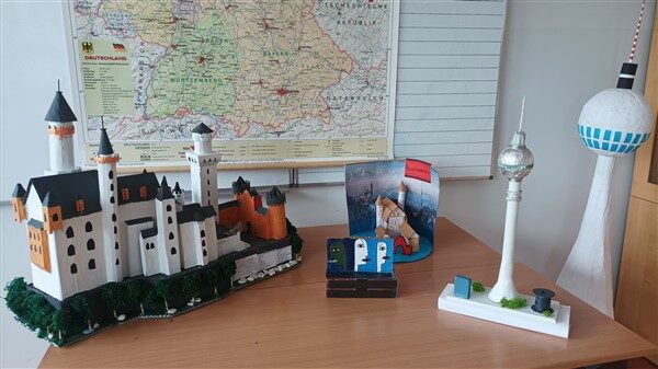 W I półroczu bieżącego roku szkolnego po raz kolejny został zorganizowany w naszej szkole wewnątrzszkolny konkurs na makietę przedstawiającą obiekty i symbole państw niemieckojęzycznych. Wśród wykonanych prac pojawiły się, m.in.: Wieża Telewizyjna, zamek Neuschwanstein oraz East Side Gallery na fragmentach Muru Berlińskiego. Wszyscy uczestnicy konkursu wykazali się dużą kreatywnością i ogromnym talentem plastycznym. Dodatkowo, do każdej pracy były dołączone informacje w języku niemieckim o danym obiekcie oraz nazwy materiałów z jakich makieta została wykonana. Pierwsze miejsce za wykonanie zamku Neuschwanstein zdobyła Zuzanna Siarno z klasy 7a, II miejsce Lucyna Gawrońska z klasy 8b, która wykonała berlińską Wieżę Telewizyjną, III miejsce natomiast Zofia Mielnik z klasy 7e za wykonanie fragmentu Muru Berlińskiego. Dodatkowo wyróżniona została też praca Maksyma Kreszczuka z klasy 7c przedstawiająca zamek Neuschwanstein.