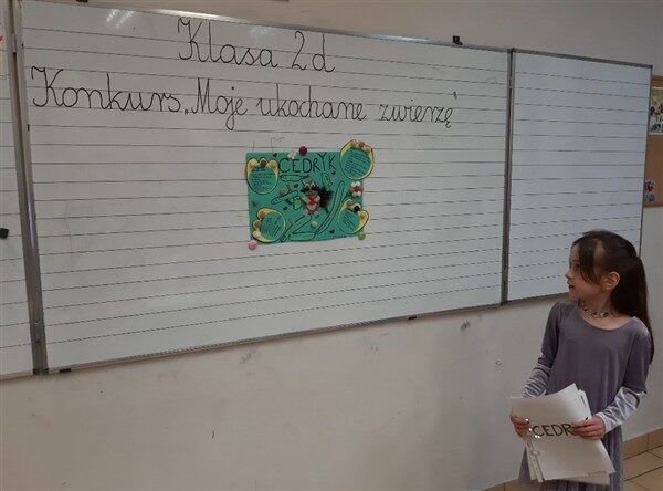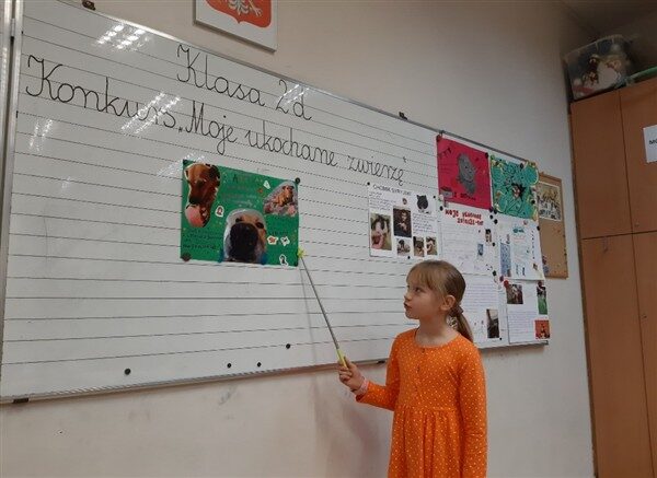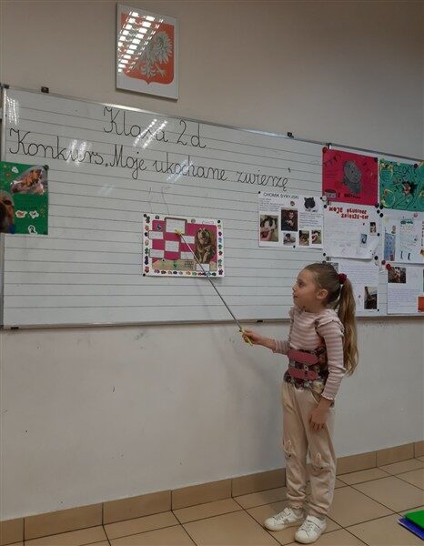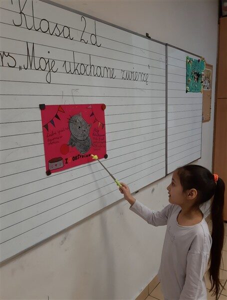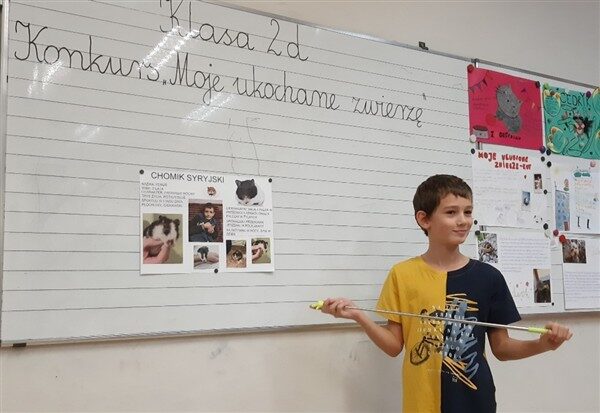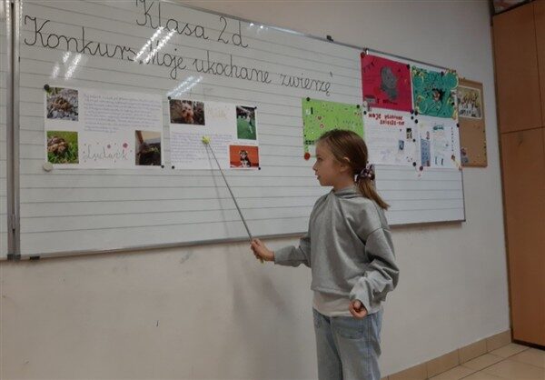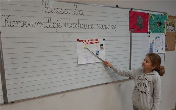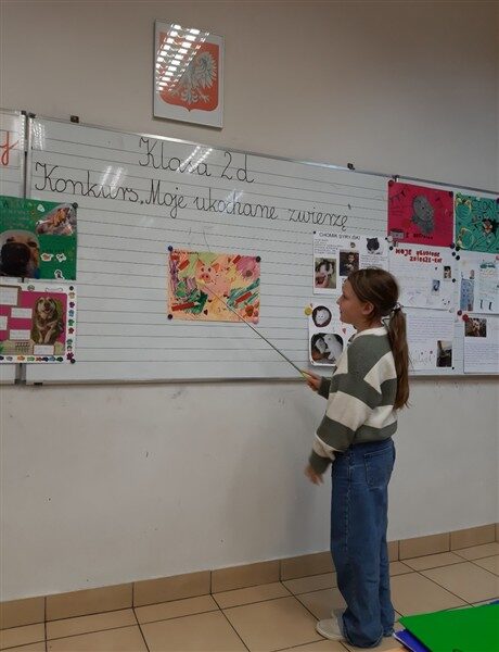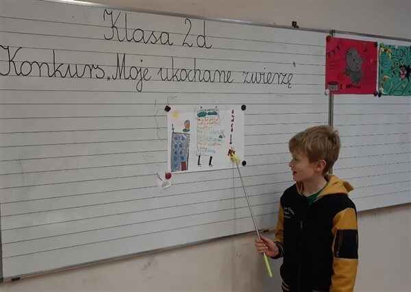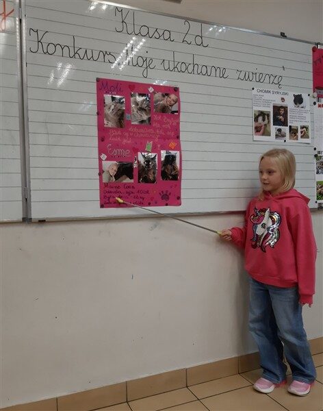 24 października 2025r w klasie 2d odbył się konkurs na temat Moje ukochane zwierzę. Zadania konkursowe skierowane były do chętnych uczniów z tej klasy. Dzieci wykonały ciekawe plakaty i w formie prezentacji opowiadały o swoich ulubionych zwierzętach. Była to wspaniała edukacja przyrodnicza połączona z zabawą, która przybliżyła uczniom świat zwierząt domowych. Wszyscy uczestnicy otrzymali nagrody. Uczniowie wspólnie wyłonili zwycięzców I, II i III miejsce.