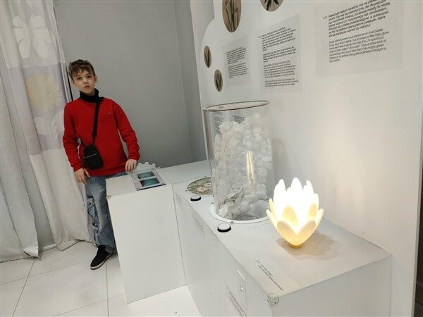 „Pisklę” to rzeźba akustyczna. Z jej środka dobiegają odgłosy bicia serca, pukania dziobem w skorupę oraz pierwsze dźwięki, jakie wydaje pisklę. Jajo drży, ponieważ działa jak membrana pozwalająca na słuchanie i odczuwanie drgań fal dźwiękowych. Żeby to jednak usłyszeć i poczuć trzeba go dotknąć, przyłożyć głowę lub przytulić się do niego. Rzeźba wzbudziła w nas wiele emocji 😊