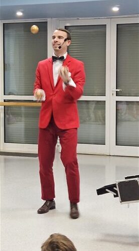 9 grudnia naszą świetlicę odwiedził wyjątkowy gość – prawdziwy czarodziej! Mimo uważnego obserwowania nikt nie zdołał dostrzec, jak z jednej butelki powstawały kolejne, jak obrazki same nabierały kolorów, a sznurki w niewytłumaczalny sposób dzieliły się i łączyły. Pokaz pełen iluzji i zaskakujących trików wzbudził ogromne zainteresowanie dzieci, które chętnie wcielały się w rolę asystentów magika. To była pełna radości i zdumienia wizyta, którą długo będziemy pamiętać!
