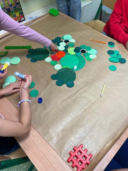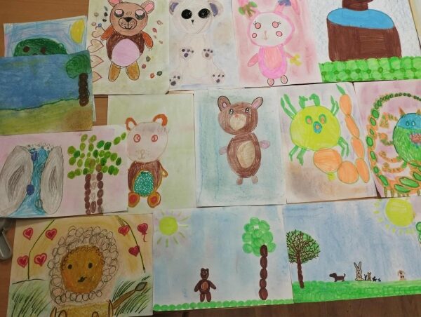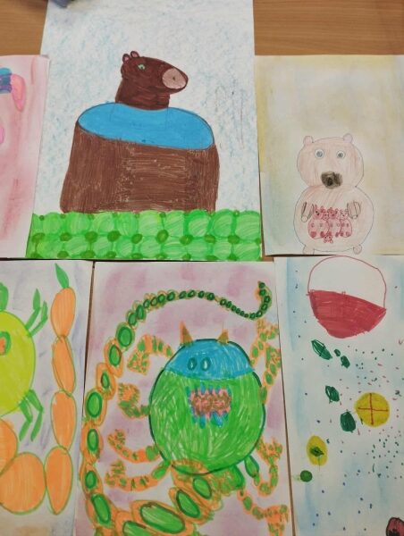 Podczas zajęć plastycznych dzieci tworzyły własne, kolorowe “kropkowe” dzieła sztuki – każda praca była inna, niepowtarzalna i pełna wyobraźni.