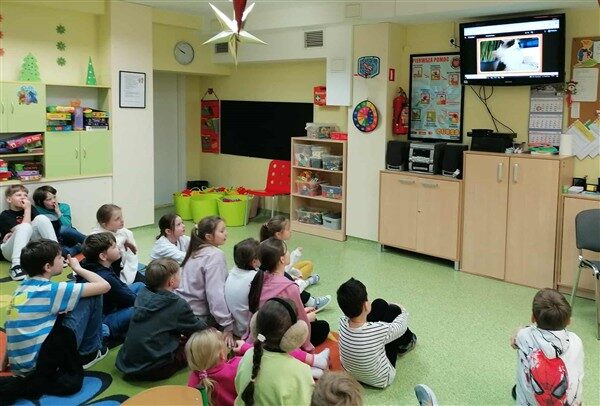 Świętowanie rozpoczęliśmy od oglądania filmów edukacyjnych, dzięki którym uczniowie mogli dowiedzieć się wielu interesujących informacji o życiu kotów, ich zwyczajach oraz potrzebach. Następnie rozmawialiśmy o tym, jak odpowiedzialnie opiekować się kotami, czym je karmić oraz w jaki sposób dbać o ich zdrowie i bezpieczeństwo.