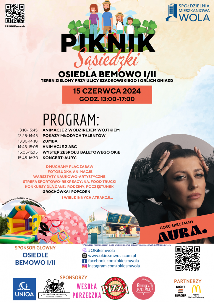 15 czerwca, w godzinach 13:00-17:00, na terenach zielonych przy ulicach Szadkowskiego i Orlich Gniazd odbędzie się Piknik Sąsiedzki organizowany przez Radę Osiedla Bemowo I/II i OKiE SM WOLA. Podczas Pikniku będzie wiele aktywności m.in. konkursy, aktywności sportowe, stoiska edukacyjne, piknikowe przekąski 🙂
