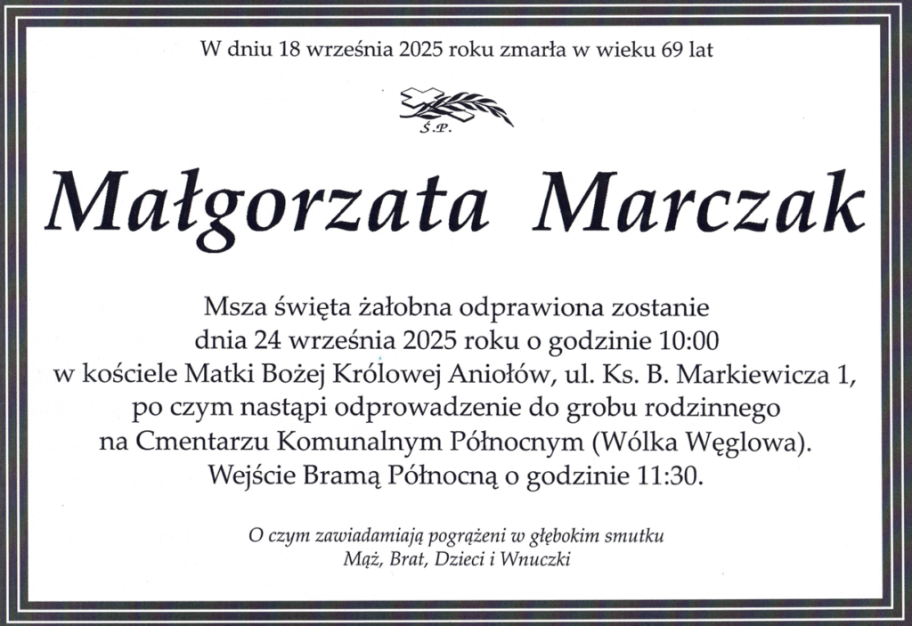 Z głębokim żalem i smutkiem informujemy, że 18.09.2025 r. odeszła od nas nasza droga Koleżanka i wieloletni nauczyciel edukacji wczesnoszkolnej Małgorzata Marczak. Jej odejście to ogromna strata dla całej społeczności szkolnej.