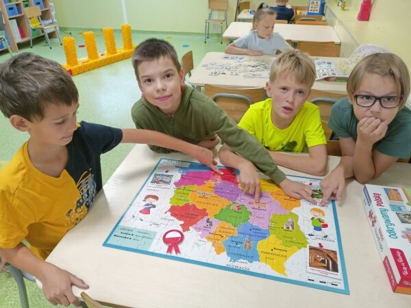 Oprócz aktywności fizycznych, nie zabrakło także zabaw integracyjnych, które pomogły wszystkim lepiej się poznać po wakacyjnej przerwie. Wspólnie dzieliliśmy się wakacyjnymi wspomnieniami, a nasza świetlica szybko wypełniła się śmiechem i radością. Cieszymy się, że znowu jesteśmy razem i nie możemy się doczekać kolejnych, pełnych zabawy i nauki dni!