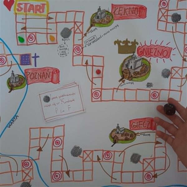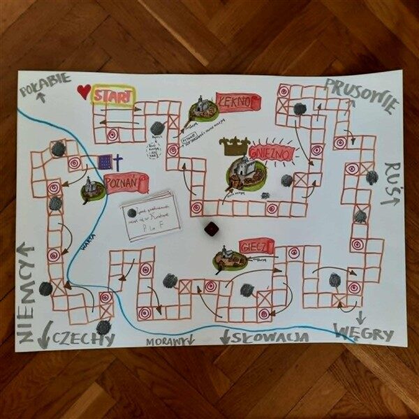 W ramach PROJEKTU MUZHP 1000-lecie koronacji Bolesława Chrobrego stworzyliśmy grę planszową. Uczniowie w czasie gry rywalizowali ze sobą sprawdzając przy okazji swoją wiedzę o tamtych czasach. Zabawa, w czasie której się uczymy, jest podwójnie wartościowa 🙂