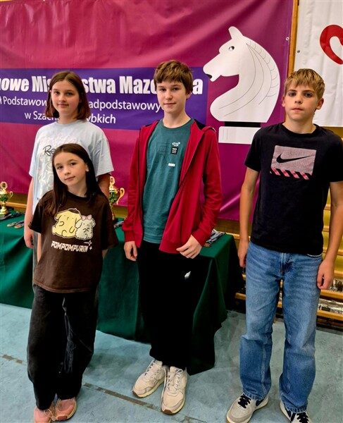 Dodatkowo w niedzielę cała czwórka reprezentowała naszą szkołę w Mistrzostwach Mazowsza Juniorów w Szachach Szybkich.