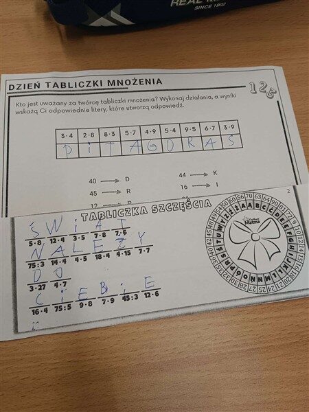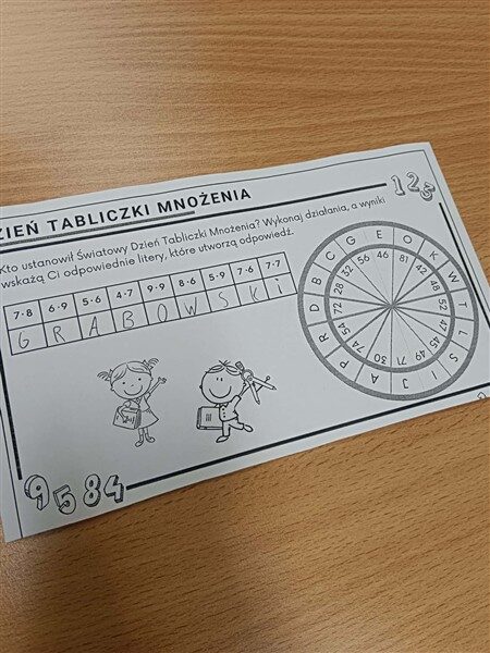 W naszej szkole kolejny raz obchodzono Światowy Dzień Tabliczki Mnożenia pod hasłem „Młodsi sprawdzają, czy starsi tabliczkę mnożenia znają”. Jak co roku nie zabrakło dobrej zabawy, zdrowej rywalizacji oraz okazji do sprawdzenia matematycznych umiejętności. Egzaminy nie ominęły nawet nauczycieli, którzy z uśmiechem podjęli wyzwanie i bez większych trudności udowodnili, że tabliczkę mnożenia znają doskonale. Uczniowie natomiast podczas lekcji mierzyli się z zadaniami na czas, sprawdzając swoją szybkość i precyzję w liczeniu. Dodatkowo uczestnicy odkrywali „tabliczki szczęścia” oraz rozwiązywali matematyczne rebusy, które cieszyły się dużym zainteresowaniem i pozwalały spojrzeć na matematykę z nieco innej, bardziej kreatywnej strony.
