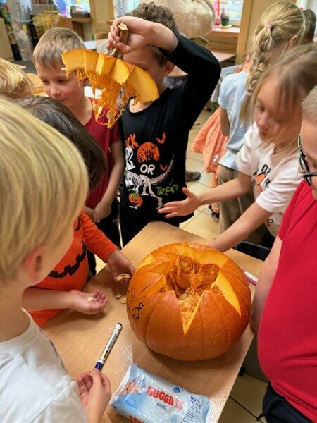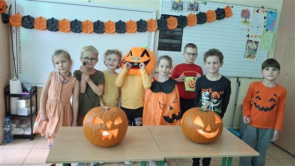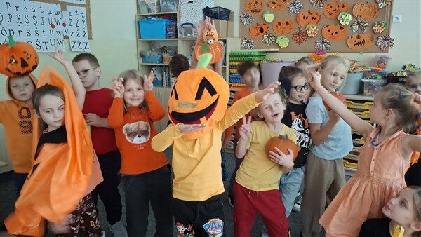 Jak co roku, obchodziliśmy w naszej świetlicy święto dyni. Dowiedzieliśmy się, jakie wartości odżywcze posiada dynia oraz ile potraw można z niej przyrządzić. Rozmawialiśmy o cechach, odmianach i pochodzeniu dyni. Powstawały dynie z papieru, z klocków oraz prawdziwe dynie-lampiony. Mieliśmy również dyniowy pokaz mody. Było pomarańczowo i wesoło!