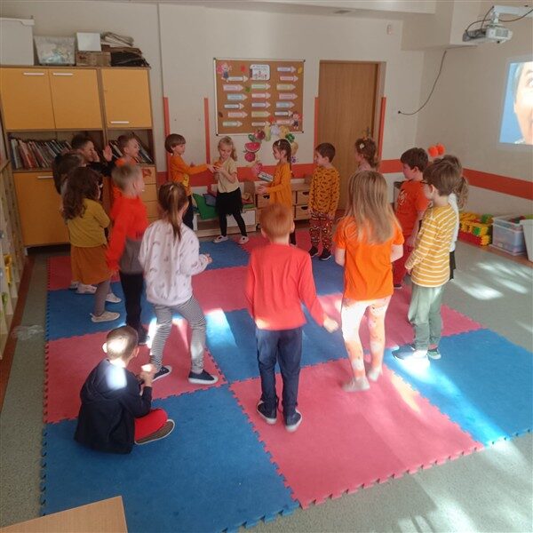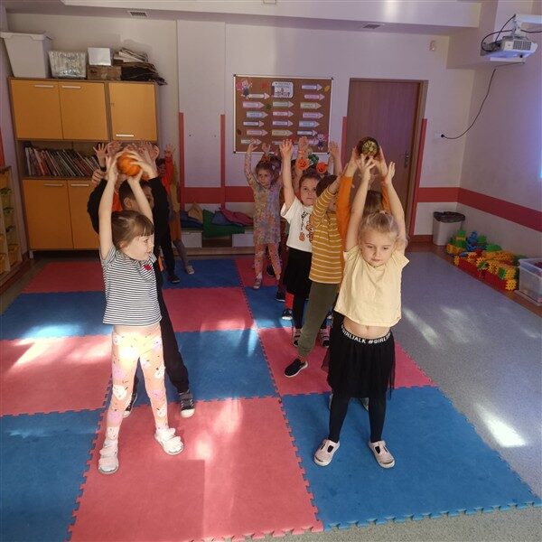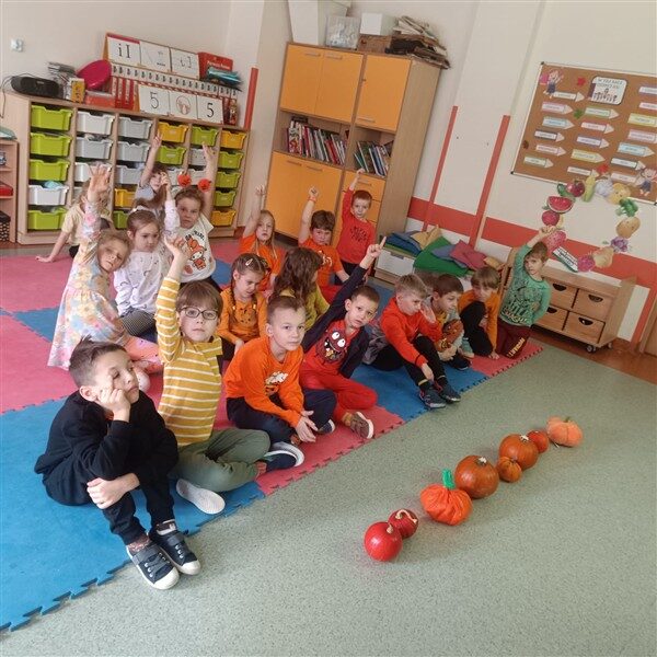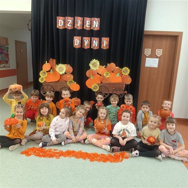W tym dniu dzieci przyszły ubrane na kolor pomarańczowy. Najpierw poznały wielką różnorodność dyń i poszerzyły wiedzę na ich temat, budowę i cykl rozwoju. Potem były zabawy ruchowe, matematyczne, sensoryczne. Na koniec była praca plastyczna.