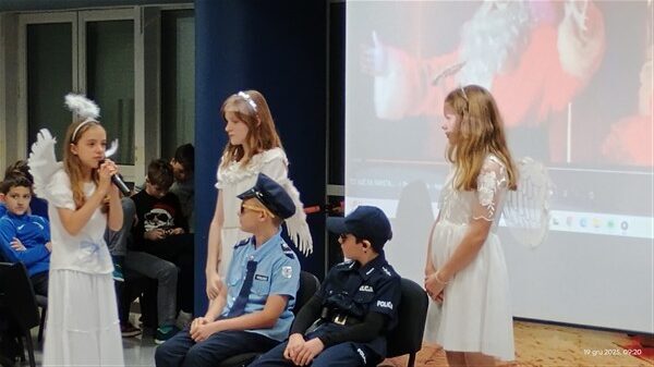 19 grudnia w naszej szkole odbyło się przedstawienie ,,Jasełka z rogami” pod kierunkiem p. Anny Wiechowskiej. Na scenie wystąpili uczniowie klas 4-8. Młodzi artyści tańczyli, grali na skrzypcach, robili chemiczne doświadczenia oraz śpiewali znane kolędy w języku polskim i angielskim wprowadzając wszystkich w radosny świąteczny nastrój. Było magicznie.