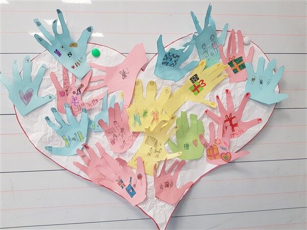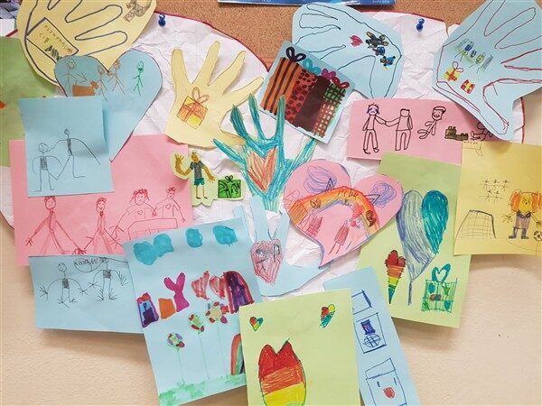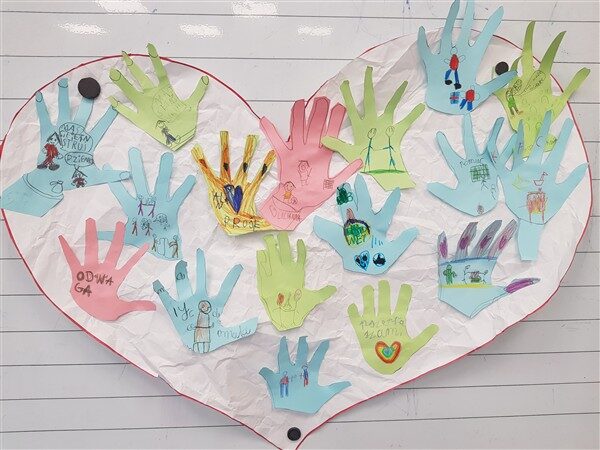 Uczniowie mieli mnóstwo pomysłów, które narysowali i przykleili do serca symbolizującego wewnętrzne szczęście Franka. Wspólnymi siłami spróbowali odbudować jego wewnętrzne szczęście.