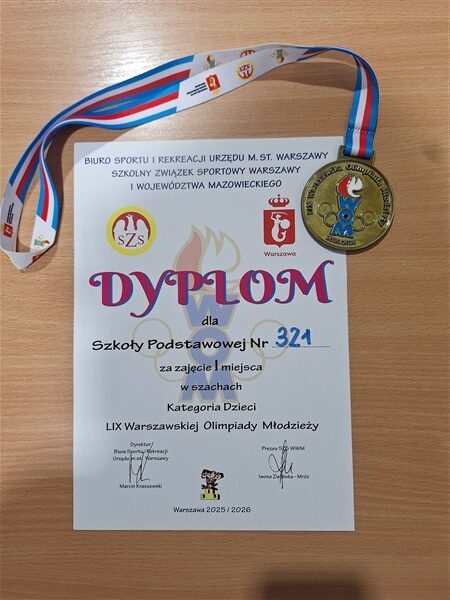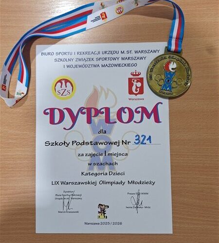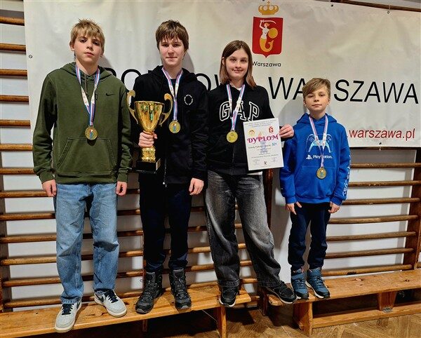 Z radością informujemy, że drużyna naszej szkoły zdobyła złoty medal w warszawskim turnieju WOM – kategoria dzieci w szachach drużynowych, który odbył się 24 listopada w SP 143!