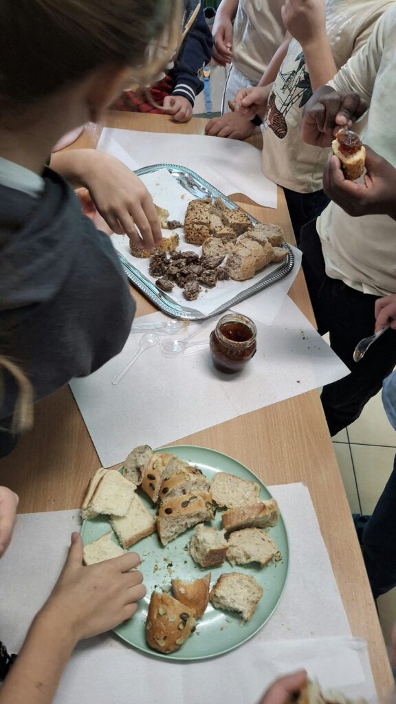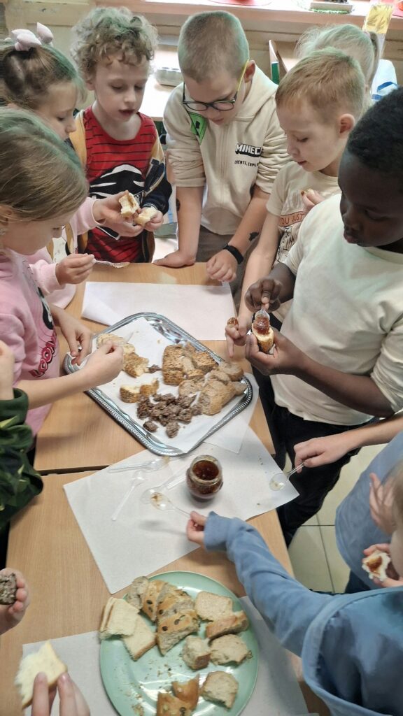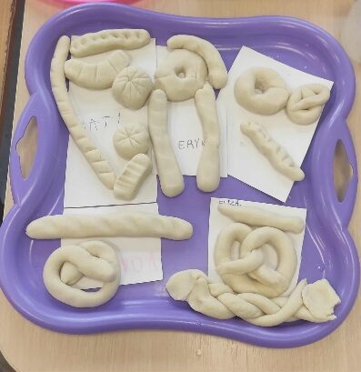 Dzieci poznały historię chleba “Od ziarenka do bochenka” oraz jego znaczenie kulturowe i odżywcze., Wykonały prace plastyczne, tworzyły chlebki z masy solnej, a wspólna degustacja była okazja do spróbowania i poznania smaków różnych rodzajów pieczywa przez dzieci.